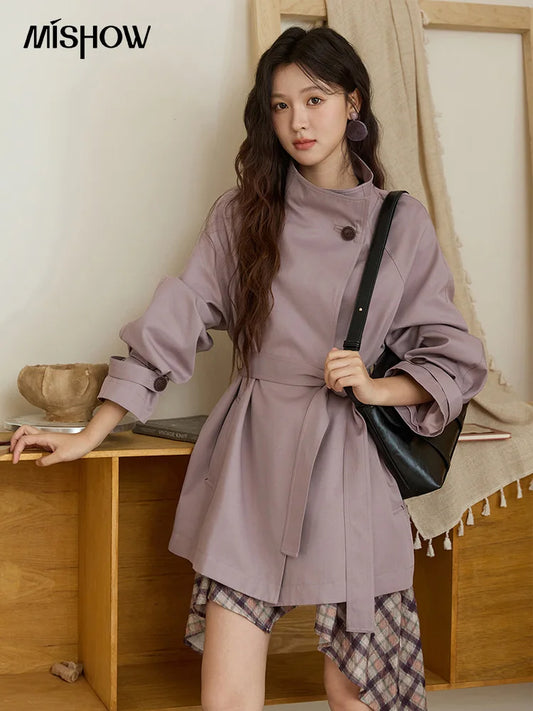 Elegant Stand Collar Women's Trench Coat - Autumn Fashion