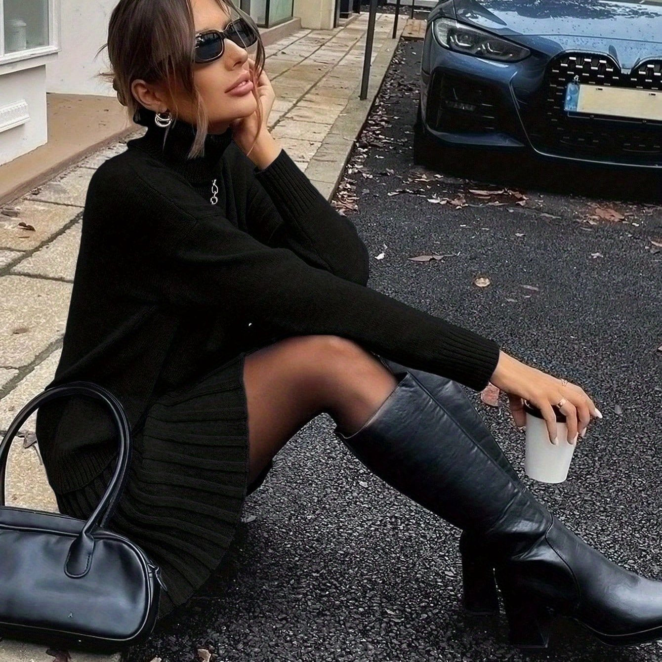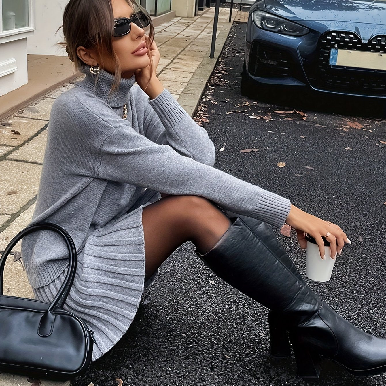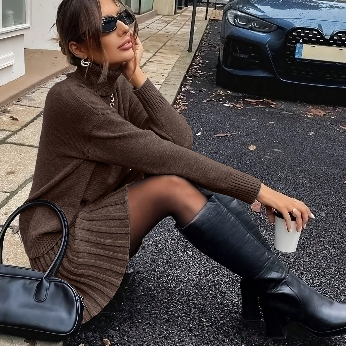 Women'S Two-Piece Set, High Neck Top + Pleated Skirt Outfit, Perfect for Fall, Stylish Outfit, Chic Outfit, Trendy Outfit, Cozy Outfit, Comfortable Outfit, Casual Outfit, Casual Wear, Fall Fashion, High Neck Top, Pleated Skirt, Matching Set